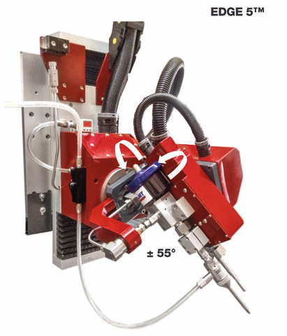 2 - Sistema a 5 ejes interpolados modelo EDGE 5 para el control de la conectividad y del corte inclinado 2D a ±55° ideal para la ejecución de los cortes inclinados necesarios por ejemplo para el corte velo de 45º. Sistema de pulsador para el posicionamiento preciso del eje Z para realizar velos perfectos.